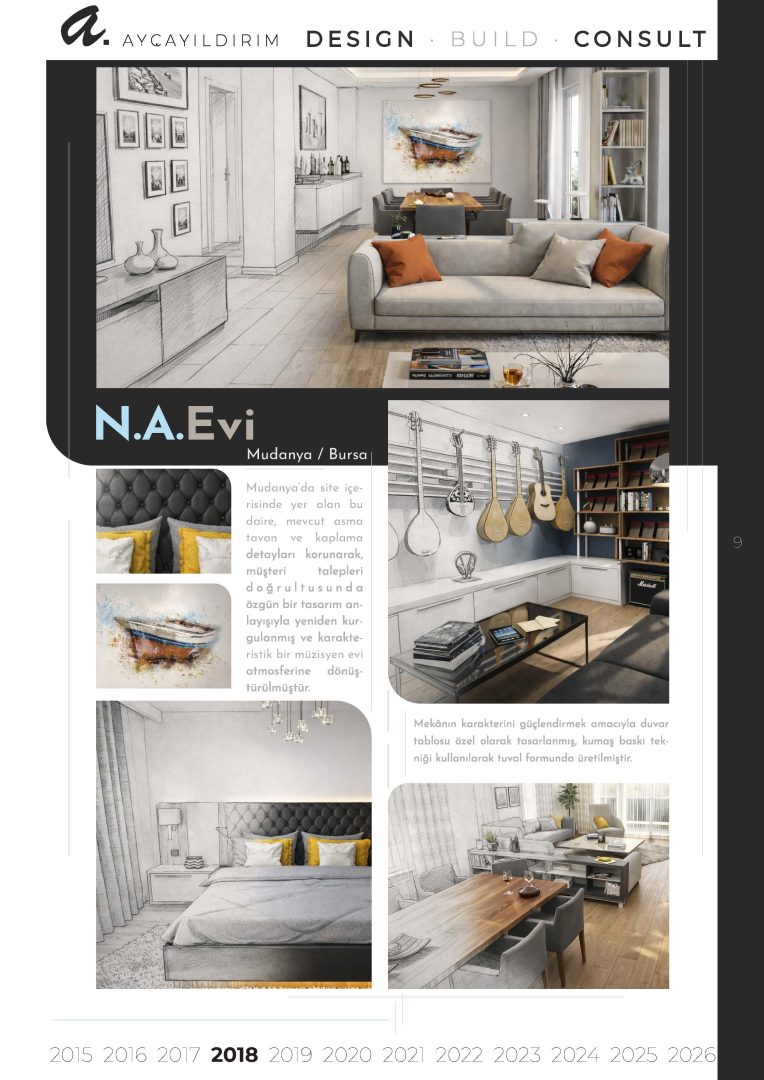 Arsanın potansiyelini, kullanıcı ihtiyaçlarını ve estetik değerleri bir araya getiren özgün mimari projeler geliştirilir. Konseptten uygulama projelerine kadar tüm tasarım süreci titizlikle yürütülür.