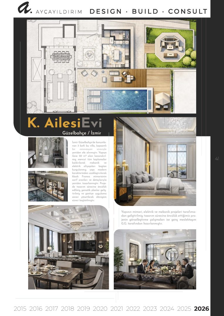 2 milyon m²’nin üzerinde gerçekleştirdiğim ve yönettiğim projelerden edindiğim kapsamlı saha deneyimi ve proje yönetimi birikimiyle, yaklaşık 15 yıllık mesleki yolculuğumun ardından çalışmalarımı artık bağımsız olarak sürdürmekteyim. Hayali kurulan mekânların tasarlanmasının yalnızca görsel bir üretim süreci olmadığını; disiplinli planlama, doğru teknik detaylar ve güçlü bir uygulama altyapısı gerektirdiğini biliyorum. Bu anlayış, mesleki yolumu bağımsız olarak şekillendirme kararımda belirleyici olmuştur. Küçük ya da büyük ölçekli her proje; doğru kurgulanmış bir sistem, disiplinli bir süreç yönetimi ve kararlı bir liderlik gerektirir. Benim yaklaşımımda mimarlık yalnızca tasarlamak değildir. Aynı zamanda kontrol edilebilir, sürdürülebilir ve güçlü bir yapı üretim sistemi kurmaktır. Hedefim; belirsizlikleri ortadan kaldıran, süreci yönetilebilir kılan ve yapıyı yalnızca inşa etmekle kalmayıp tüm bileşenleriyle birlikte güvenli, estetik ve sürdürülebilir hale getiren bir üretim yaklaşımı sunmaktır.